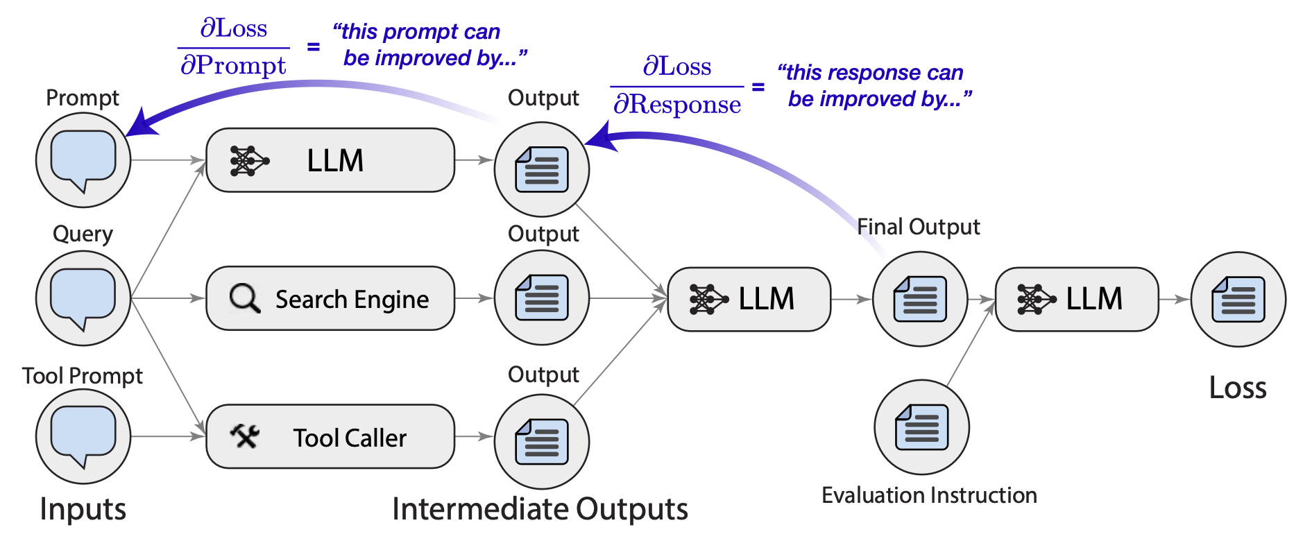 TextGrad (Yuksekgonul et al., 2024) takes the gradient analogy further by building a complete automatic differentiation framework for text: